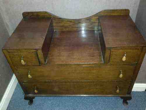 1920'S Queen Anne dressing table in Walnut. Five drawers but no mirror. Bit of damage to top.